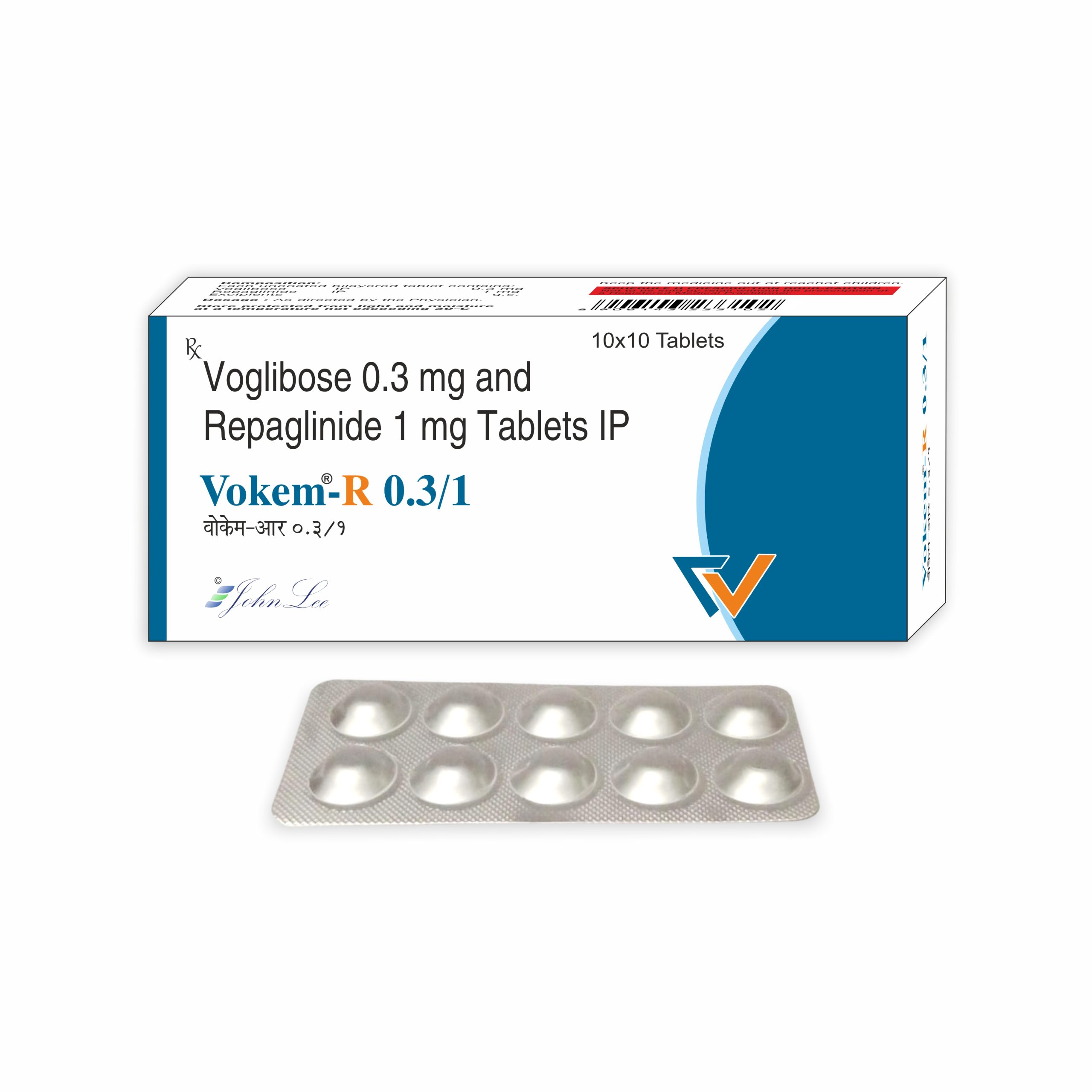 Repaglinide is a meglitinide analogue which increases the amount of insulin released by the pancreas. Voglibose is an alpha-glucosidase inhibitor which inhibits the intestinal enzymes that cause breakdown of complex sugars into simple sugars such as glucose. Together, they prevent blood sugar from rising very high after meals.